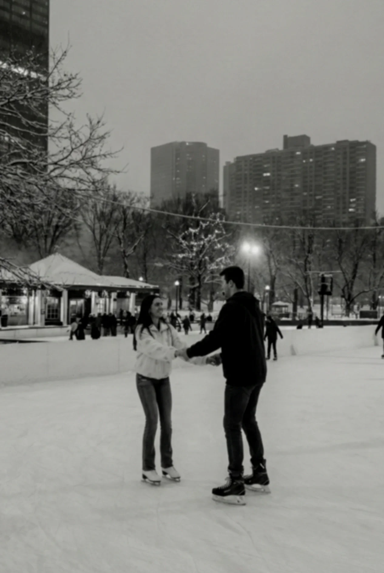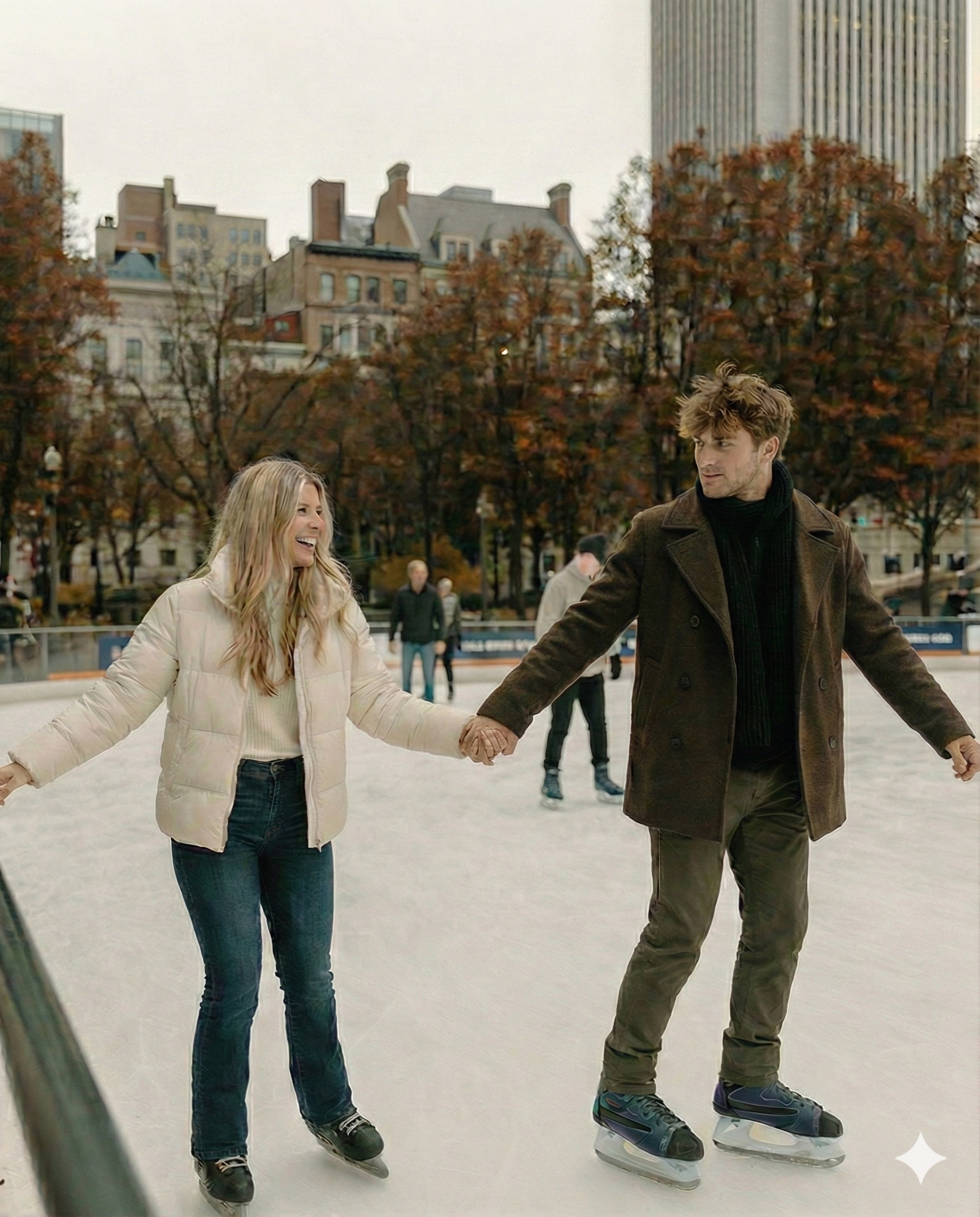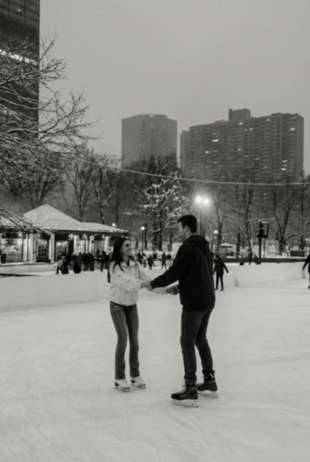 A 45-minute ice rink shoot that feels like a holiday movie scene — complete with your skating tickets, a short film reel, and 40+ timeless photos from the dreamiest winter date in Boston.